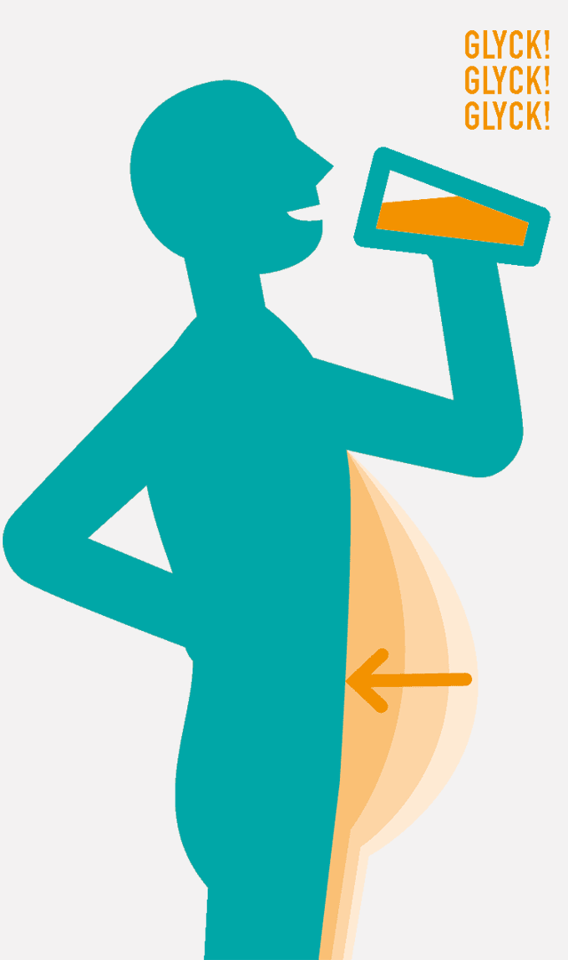 Trinken Sie Ihre tägliche Dosis GLYCK an jedem Tag Ihres Abnehmens. Zwei Liter täglich – in regelmäßigen Abständen über den Tag verteilt – verhindern Hungergefühle.